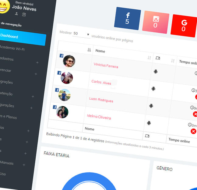 O Wi-Fi Manager é a melhor solução para obter dados de seus verdadeiros clientes, entender melhor o que cada um gosta ou pensa do seu negócio, divulgar seus novos produtos e serviços e ainda ter segurança em seu negócio, tudo através da rede Wi-Fi, isso mesmo! Aquela rede que antes era apenas uma senha, que não gerava nenhum benefício, agora é uma ferramenta inovadora para fidelizar e atrair novos clientes com um investimento que cabe no seu bolso!